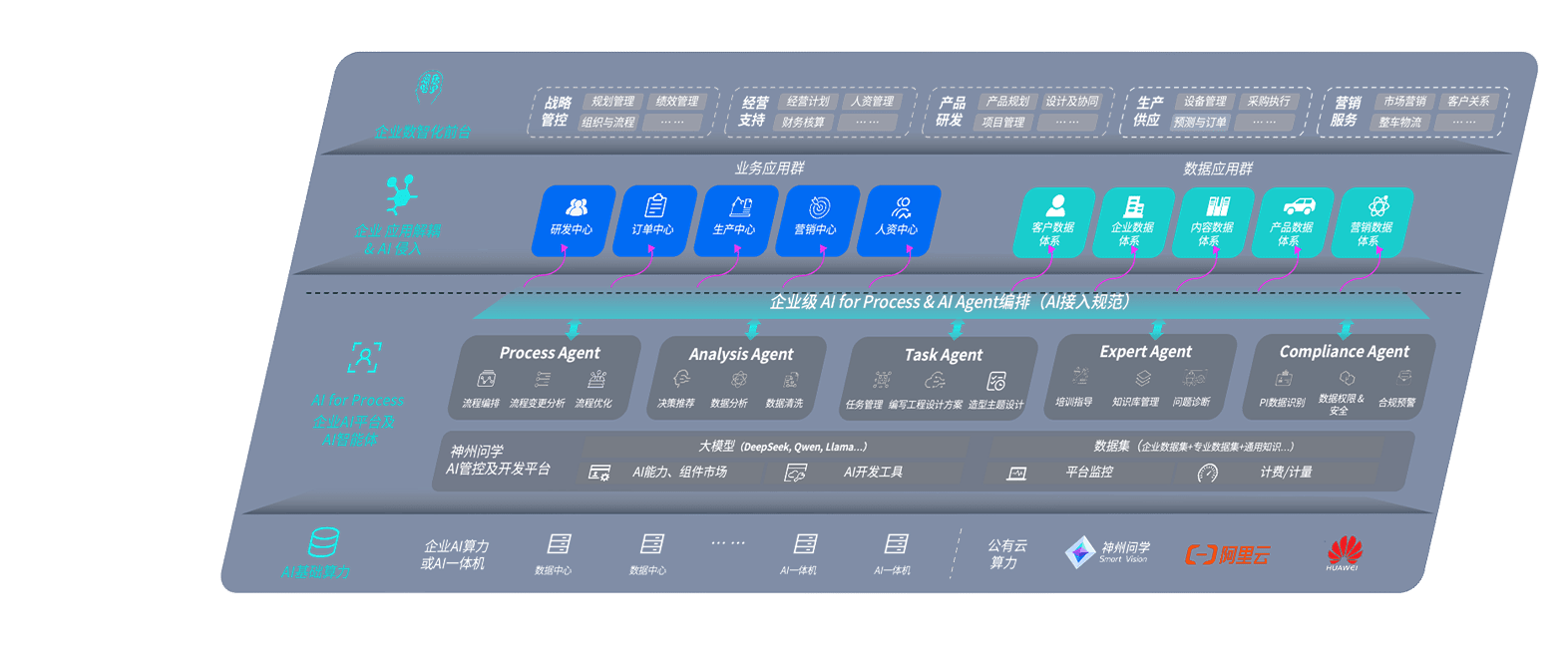 不凡成就非凡问学智车解决方案是一套基于AI技术的汽车行业智能化系统,,,覆盖从底层算力到顶层AI应用的全栈方案。。方案由算力层、、、模型层和应用层组成:算力层,,方案支持多种一体机配置,,,具备云端灵活部署、、、、多云适配以及动态优化计算资源的能力;模型层,,,不凡成就非凡问学平台版提供了企业级AI应用一站式构建与管理平台,,,支持基于后训练强化技术的汽车企业专属模型的训练、、评测和运营;应用层,,,不凡成就非凡问学DeepSeek版提供包括超级员工、、智能招采、、、、智能营销、、、、智能客服、、、、AI for BI等一系列解决方案,,可助力汽车行业实现数字化转型,,,,让管理更智能、、响应更敏捷。。