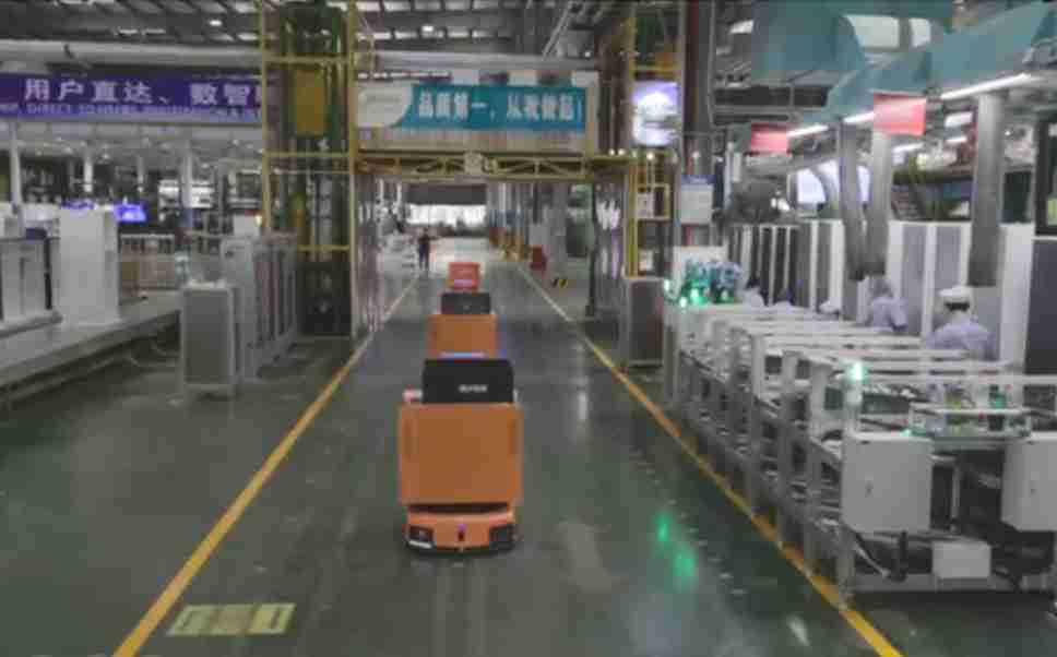 为车载冰箱物流配送打造的智能解决方案,,包含产中物流通过潜伏举升AMR搬运至线边,,产后成品物流智能仓储,,,流程包含产中物流智能齐套入库,,,线边安灯叫料AMR智能配送至线边,,成品入库、、、、出库,,通过无人堆高车机器人,,,智能仓储管理替代人工作业管理,,,实现更高存储、、、更高效率、、、更具柔性化的解决方案。。